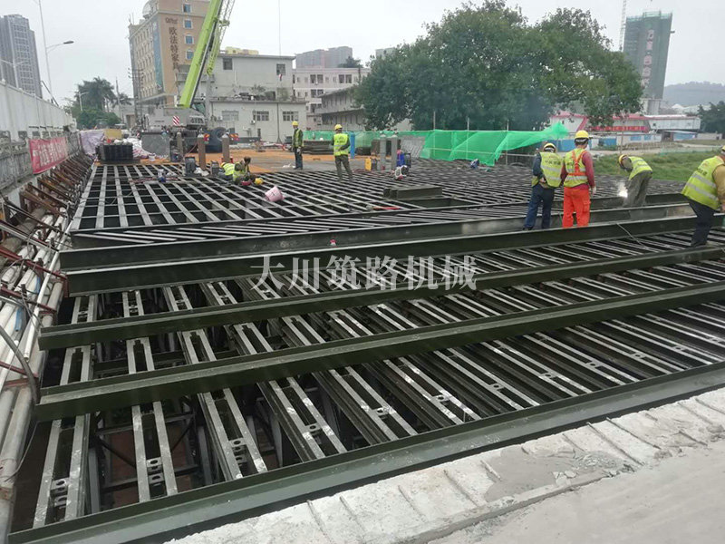 基本情況:本鋼橋安裝工期特別緊急,在疫情期間我公司克服困難,精心安排,合理組織,部分構(gòu)件出廠前既組裝好,減少現(xiàn)場工作量,總安裝周期為40天,保質(zhì)保量按時完成了安裝任務(wù)。通過中南大學(xué)下屬專業(yè)檢測機構(gòu)檢測后于2020年04月9日通車。